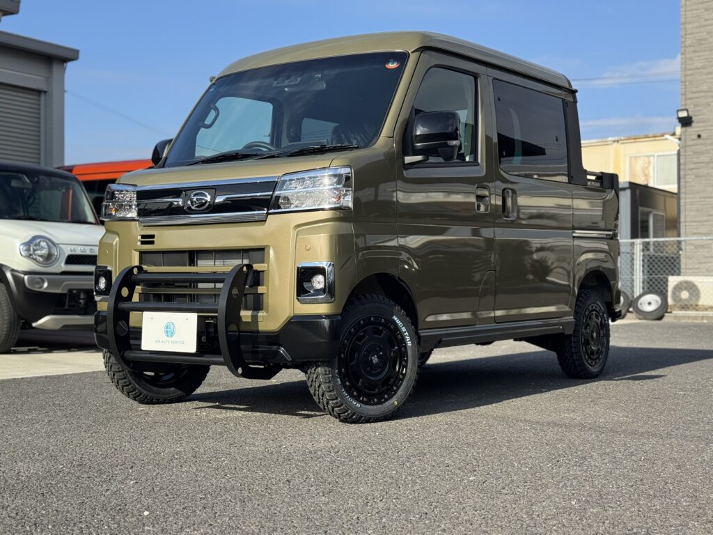 軽トラ 軽バンのリフトアップカーはエイムオートサービスにお任せください。車両販売・カスタム・買取・車検整備