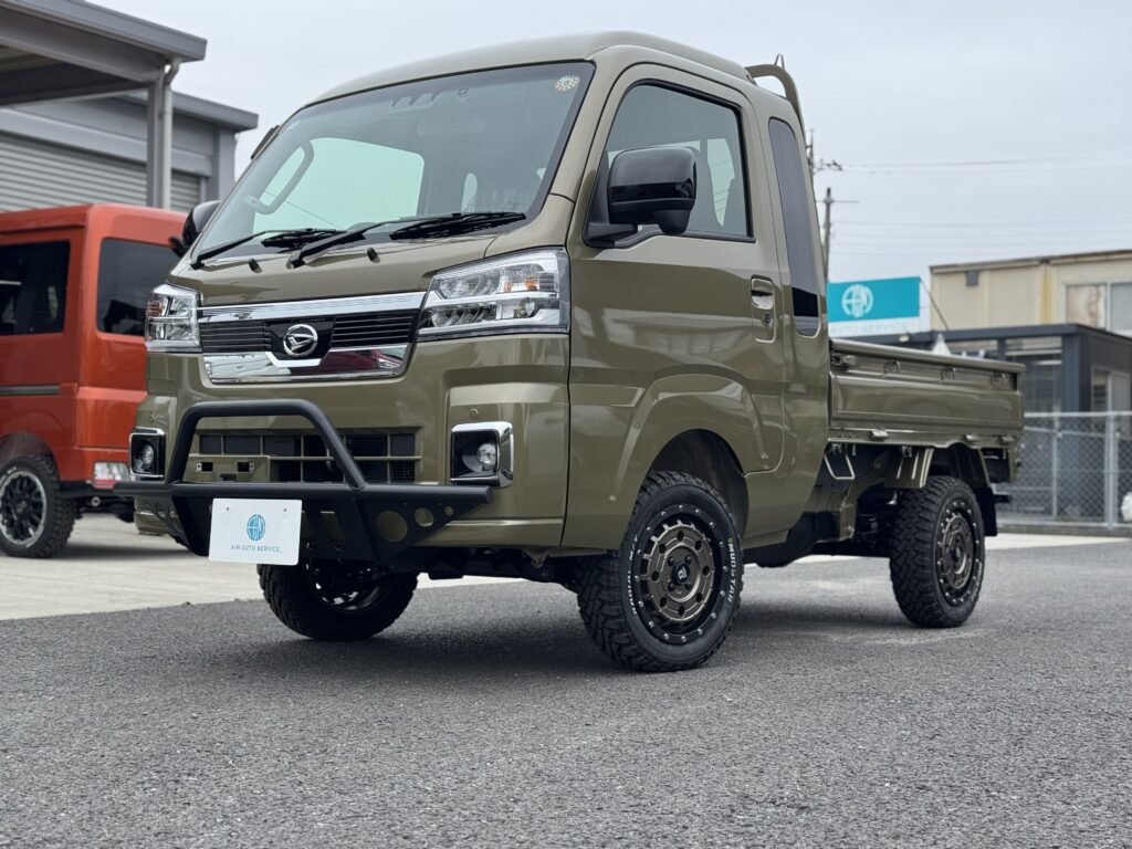 軽トラ 軽バンのリフトアップカーはエイムオートサービスにお任せください。車両販売・カスタム・買取・車検整備